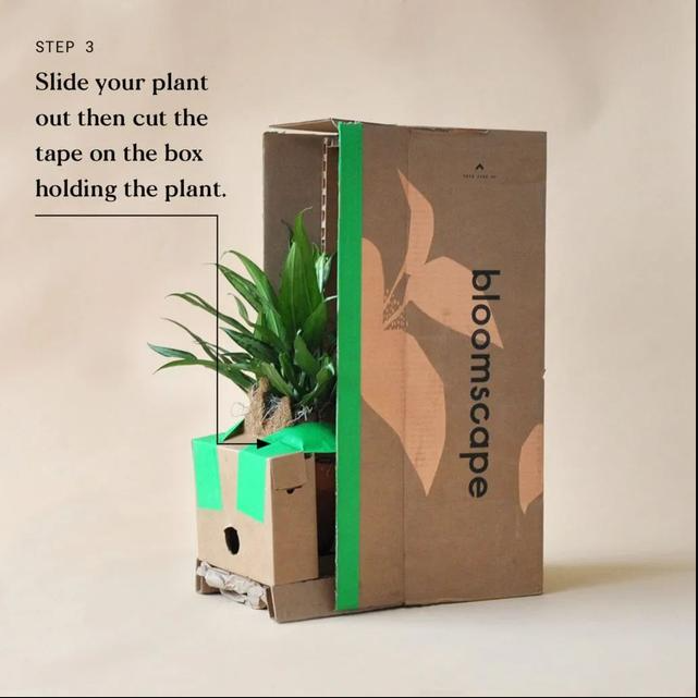 Bloomscape 在具体的运输和包装上,为了保障植物存活率和养护品质,通过自建专有的运输与包装系统,使用 100% 可回收的材料包装,并且适配各种尺寸,包括 10 英寸的大型植物或是小类盆栽,从位于密歇根州的温室直接、便捷地配送到消费者手中。