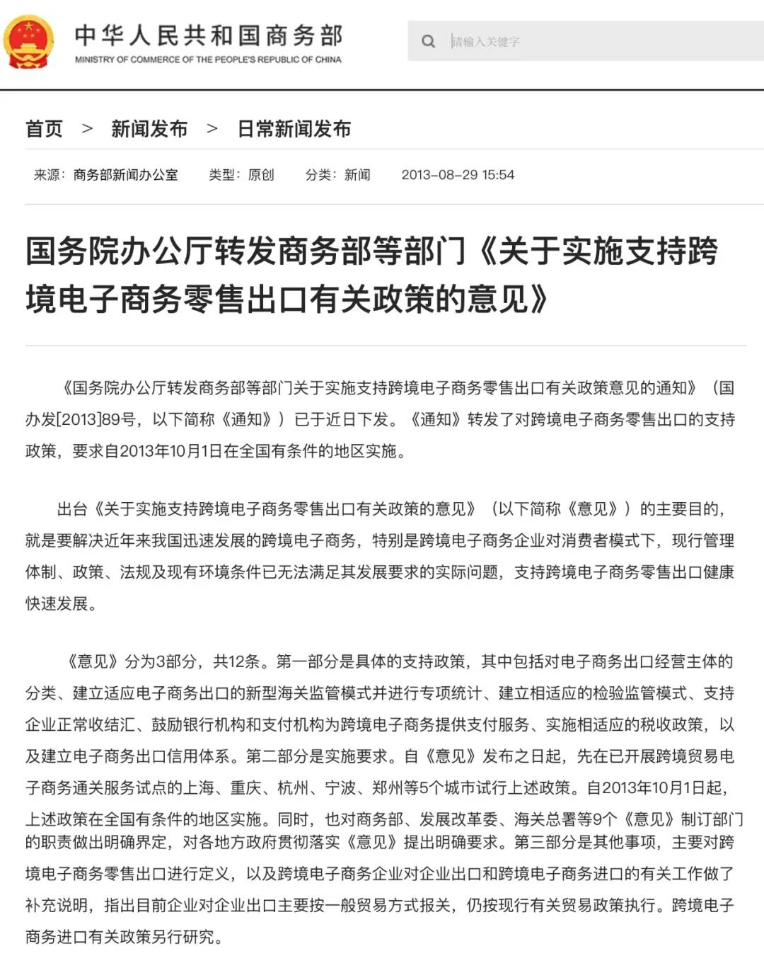 2013年,亚马逊正式对中国卖家开放,两年内达到一个爆发小高峰。同年8月,国务院发布《关于实施跨境电子商务出口有关政策的意见》,井喷式释放出利好政策。