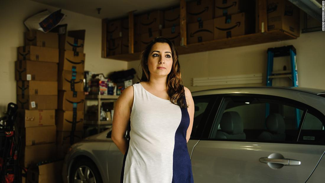在弗吉尼亚家中的Nida Kazmi。Kazmi靠着在Amazon上卖婴儿配方奶粉分配器来谋生。