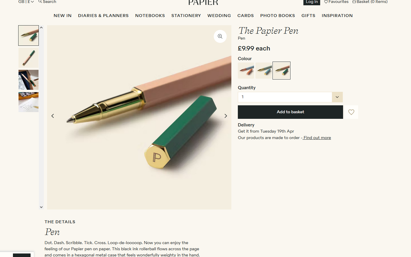 Papier 卖的虽然是传统的纸质产品及文具,其在设计、生产、获客等方面的思路却很符合当下科技创业的潮流。具体来说,Papier 是一家标准的 DTC(直接面向消费者)的消费品牌,目前唯一的销售渠道就是其自营的官方电商网站,去掉了批发商、零售商等中间环节。DTC 的模式让 Papier 可以更近距离地接触消费者,从网站直接获取数据了解消费者的画像和喜好,并利用这些数据来驱动后续的产品开发和营销决策。浏览 Papier 的网站,可以看到它卖的每一款手账、贺卡、日历和计划册等,视觉设计不能称得上华丽,但都十分“讨巧”,很贴合如今相当一部分年轻人的审美爱好。