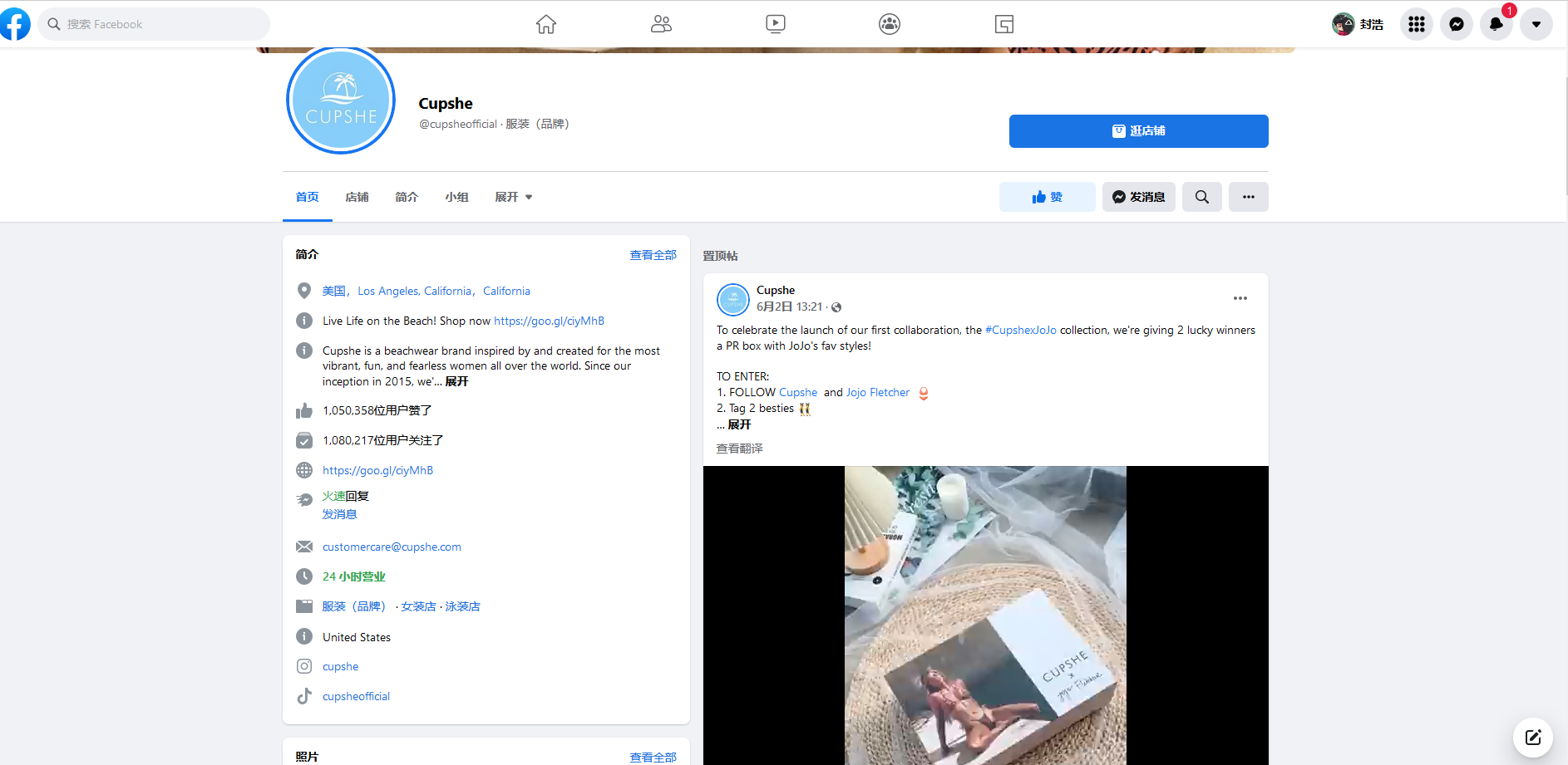 根据 Similarweb 5月14日的数据,Cupshe 超过一半(58.3%)的社交媒体PC端流量来自 Facebook,其余来自 YouTube(27.89%)、Pinterest(5.14%)、Reddit(4.10%)、和Instagram(2.47%)。Facebook 显然是其社交媒体营销的主要战场。根据相关人士透露,Cupshe 社交媒体营销的优势之一是在其品牌故事中使用客户反馈。另外,Cupshe不会像其他品牌那样自己生产优质的贴文内容,而是邀请用户、网红博主试穿后生产贴文内容(UGC内容生产)。这些贴文往往标注品牌或添加品牌标签#Hashtag,在增加品牌曝光度的同时,又能触达更多用户。
