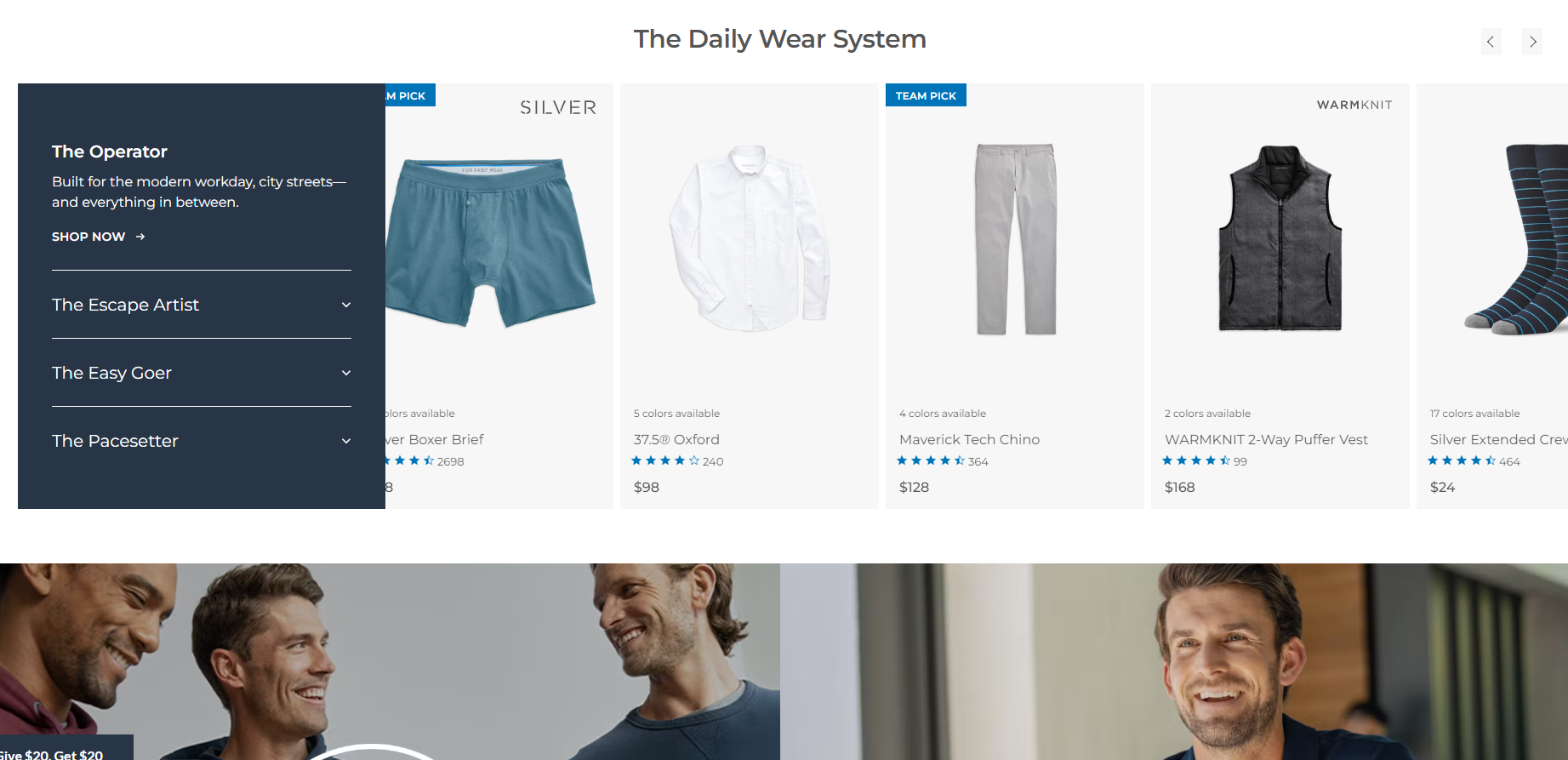 而品牌的目标群体是 25-45 岁愿意为高品质内裤买单的男士。Mack Weldon 在 CK 这样的中高端内裤面前,体现出一定的价格优势。